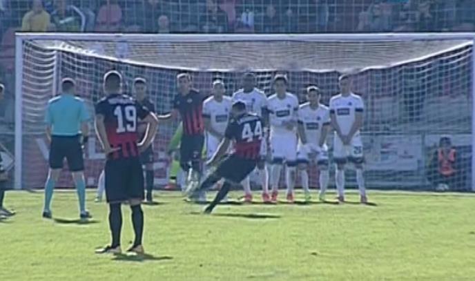 Fudbaleri Mačve poveli su protiv Partizana odličnim pogotkom iz slobodnog udarca.