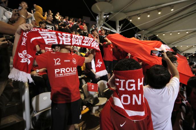 Neki od navijača su mahali zastavana kojima je pisalo "Borba za Hongkong" i "Moć Hongkongu", a obezbedjenje je pokušavalo da spreči posmatrače i pojedine novinare da slikaju te parole i zastave.