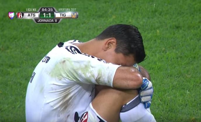 Prvo je odbranio udarac fudbalera Tigresa Luiza Rodrigeza, a onda, kada je hteo da ispuca loptu, stradala mu je stajna noga!