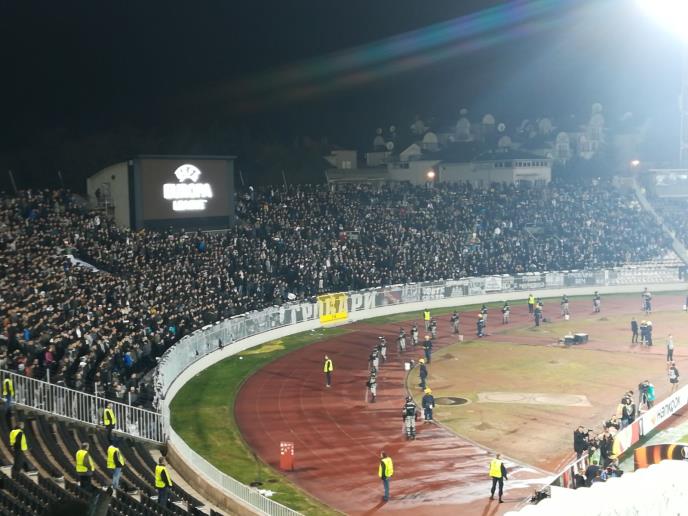 Navijači Partizna ne štede grla i dlanove, te pružaju sjajnu podršku svojim ljubimcima.