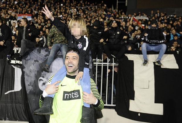 Golman Partizana ovu pobedu proslavio je sa starijim sinom Lavom koji je ispratio celu utakmicu.