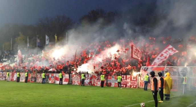 Najverniji navijači Crvene zvezde nisu propustili priliku da, uprkos jakoj kiši, zdušno bodre svoje ljubimce na meču sa Čukaričkim na Banovom brdu.
