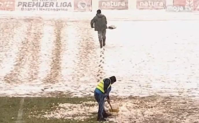 Za čišćenje terena imali su samo dve potpuno neadekvatne lopate, pa je pokušaj uklanjanja belog pokrivača bio potpuno uzaludan. Na sve to, rukama su pokušali da iscrtaju linije terena pa je konačni utisak na kraju bio potpuno komičan.