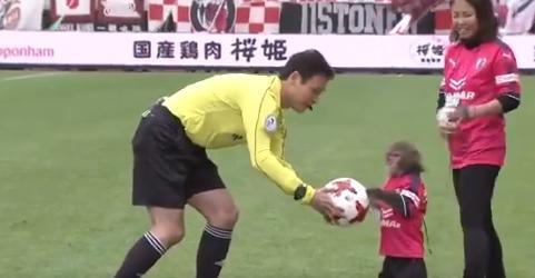 (VIDEO) VARATE SE AKO MISLITE DA STE VIDELI SVE U FUDBALU: Majmun izveo početni udarac na meču japanske lige!