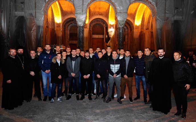 Sveštenici Hrama Svetog Save su u kripti održali molitvu za uspeh i blagodarnost u radu i poželeli našim fudbalerima i stručnom štabu da narednog četvrtka na utakmici protiv Kelna nastave putem uspeha kojim su krenuli ovog leta.