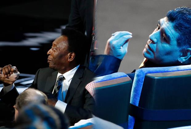 Dok legendarni Pele u kolicima dolazi na žreb i pozdravlja ga predsednik Rusije Vladimir Putin, argenstinski fudbaler Maradona je prišao i drugarski ga poljubio.