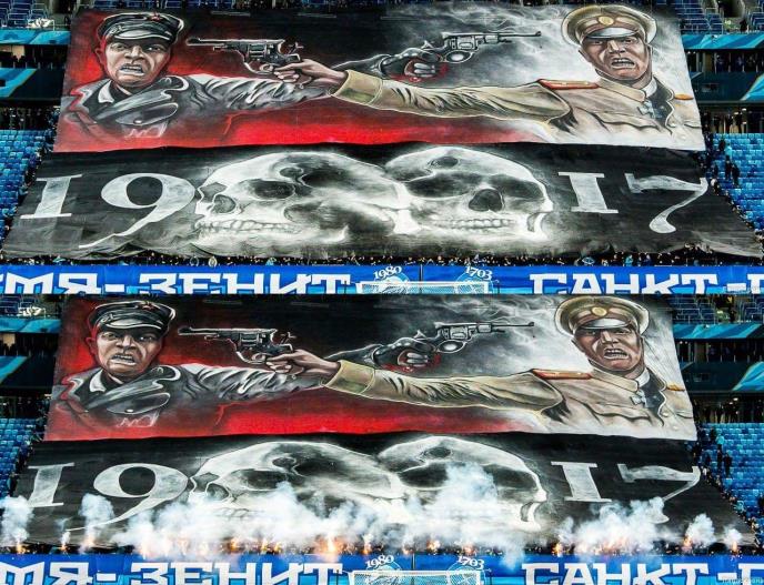 Pristalice kluba iz Sankt Peterburga su podsetile na 100. godišnjicu od početka Oktobarske revolucije i početka tragičnog bratoubilačkog rata u Rusiji.