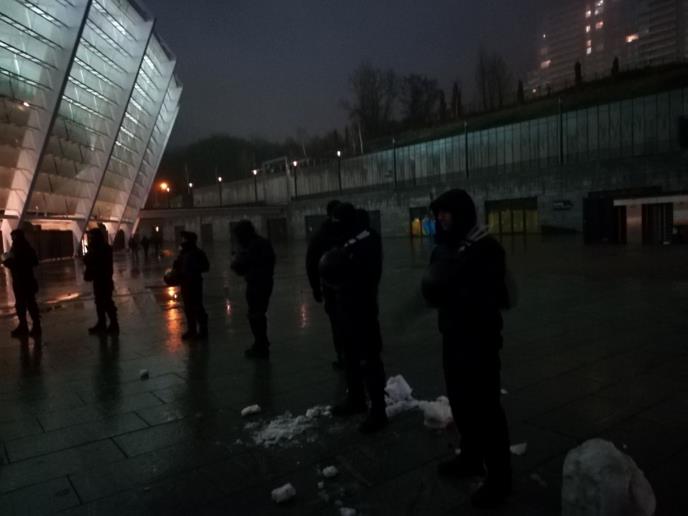 (KURIR TV) DOČEK ZA CRNO-BELE: Specijalci ispred Olimpijskog stadiona u Kijevu sačekali fudbalere Partizana