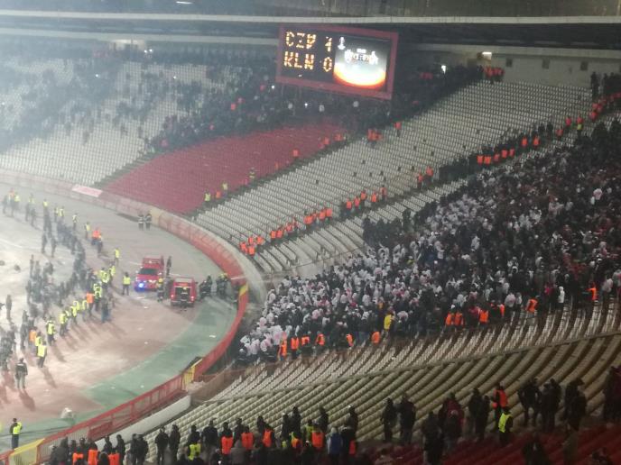 I po završetku utakmice nastavili su da pale baklje i gađaju Zvezdine pristalice, a na kraju su izazvali požar na južnoj tribini.