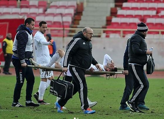 Kajević je trčao na loptu i posle sudara sa protivničkim igračem nezgodno pao na zemlju.