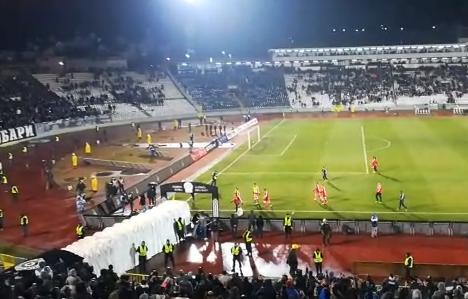 Fudbaleri Crvene zvezde salvom zvižduka od strane Grobara ispraćeni su u svlačionicu posle zagrevanja.