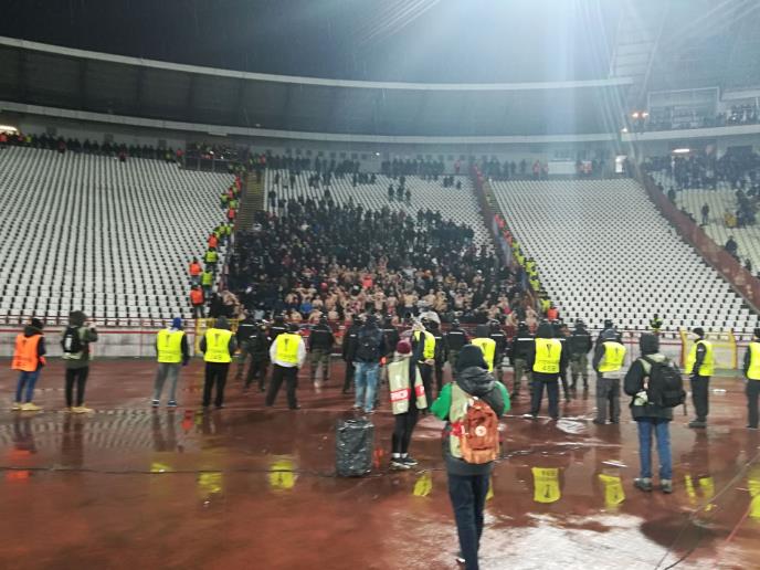 Navijači CSKA sredinom drugog dela igre poskidali su majice i navijanje nastavili goli.