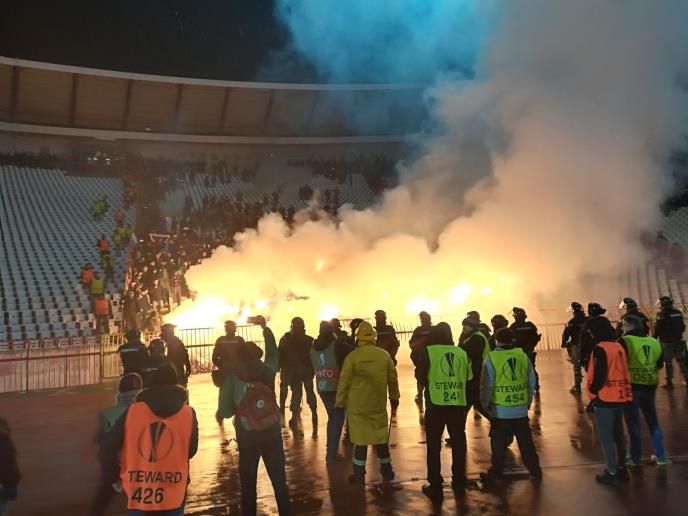 Zvezda će biti kažnjena jer su njeni navijači koristili baklje i blokirali stepenice na stadionu Rajko Mitić, ali će i CSKA biti sankcionisan zbog pirotehnike i bacanja predmeta u teren od strane ruskih pristalica.