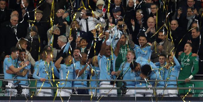 Fudbaleri Mančester sitija osvojili su prvi trofej u sezoni pošto su u finalu Liga kupa pobedili Arsenal sa 3:0 (1:0).
