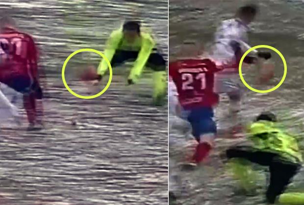 Utakmica se igrala na neverovatno lošem terenu, pa nije čudo da je jedini pogodak na meču bio prilično smešan.