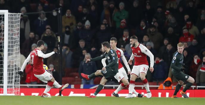 Pred svega nešto više od 20.000 gledalaca, Mančester siti je nokautirao Arsenal za pola sata - golovima Bernarda Silve, Davida Silve i Liroja Sane poveo je 3:0.