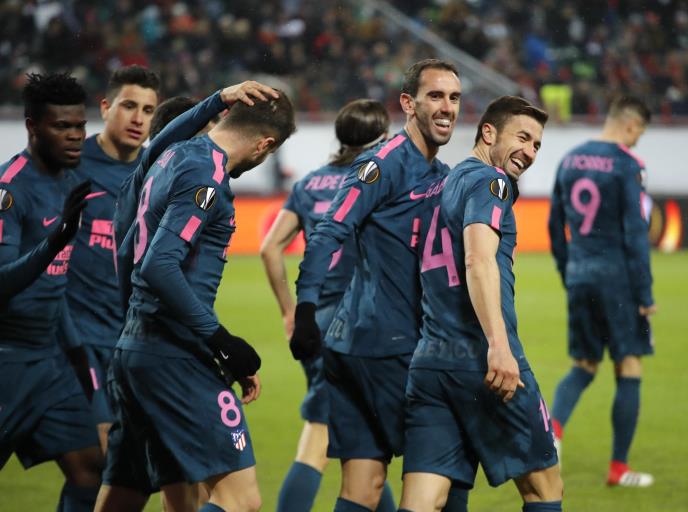 Fudbaleri Atletiko Madrida prvi su četvrtfinalisti Lige Evropa, pošto su danas i u revanšu rezultatom 5:1 pobedili Lokomotivu.