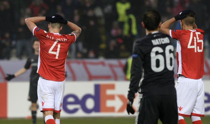 Fudbaler Crvene zvezde Nenad Krstičić povredio je na utakmici sa Mačvom stopalo nakon čega je morao da napusti teren.