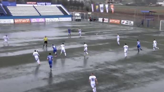 Utakmica je ipak odigrana, a kakve je muke tokom nje imalo 22 fudbalera dočaraće snimak. Kada vidite teren, može se desiti da se na tren zapitate da li gledate fudbal ili vaterpolo.