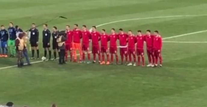 Pred početak utakimce kao po protokolu puštene su himne obe reprezentacije.