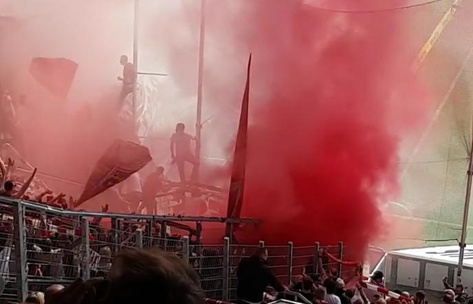 Popularni ''Jarčevi'' su uletili na deo tribine gde su bili domaći simpatizeri za vreme bakljade i uspeli da im ukradu zastavu, nakon čega je nastao haos.