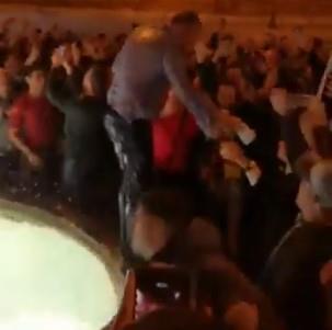 On je uskočio u fontanu u košulji i pantalonama okružen navijačima Rome koji su mahali zastavama.