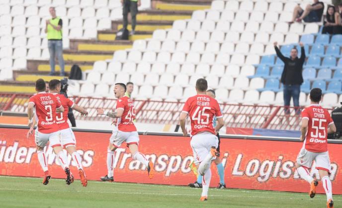 Fudbaleri Crvene zvezde pobedili su Partizan 2:1 (2:0) na stadionu "Rajko Mitić" u 157. "večitom derbiju" i praktično obezbedili titulu.