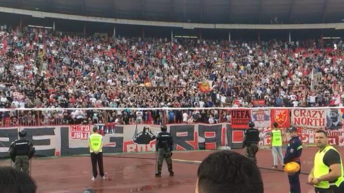 Navijači Crvene zvezde skoro da su popunili celu severnu tribinu, a nekoliko minuta pred početak 157. večitog derbija uveliko se zagrevaju za navijanje.