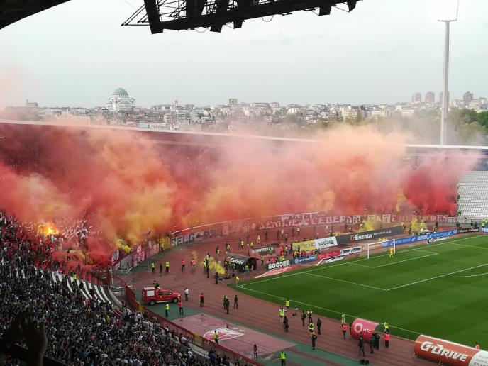 (KURIR TV) EKSPLOZIJA NA SEVERU: Evo kako su Delije proslavile golove na derbiju! Navijači skakali sa tribina, policija reagovala
