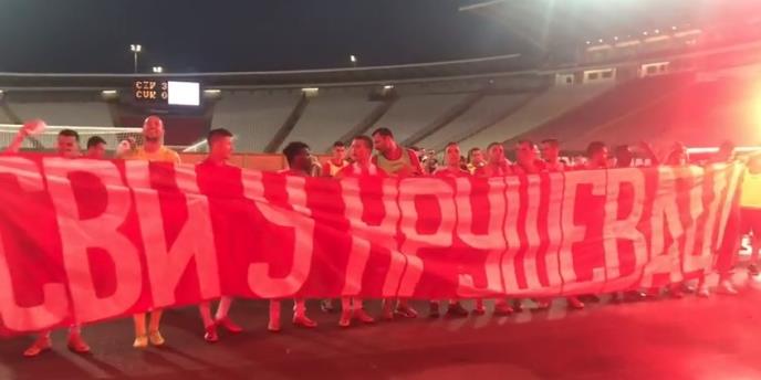 Posle meča sa "brđanima", igrači su podno Severa slavili sa "Delijama" i razvili transparent "Svi u Kruševac".