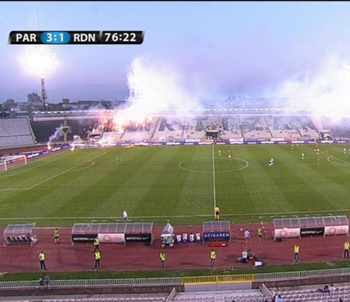 Navijači Partizana smešteni na istočnoj tribini stadiona u Humskoj i ukupljeni u grupu Partizanovci, napravili su bakljadu tokom duela sa Radničkim u 33. kolu Superlige Srbije.
