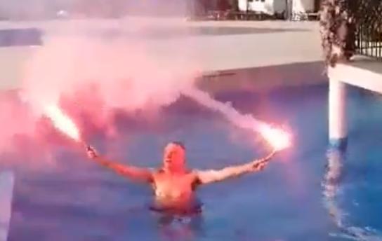 On je na Instagramu obelodanio video na kome se vidi kako u bazenu sa bakljama proslavlja titulu crveno-belih uz opis: