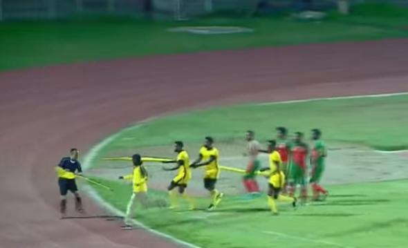 Posle jedne sudijske odluke igrači su odmah poleteli kao deliocu pravde, koji je kao bi se odbranio uzeo korner zastavicu. Ipak to nije sprečilo trenera domaćina da se zaleti i udario glavng arbitra.