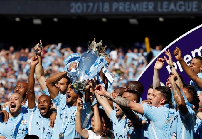 Kada se teren raščistio, "građanima" je uručen pehar namenjem šampionu Premijer lige.
