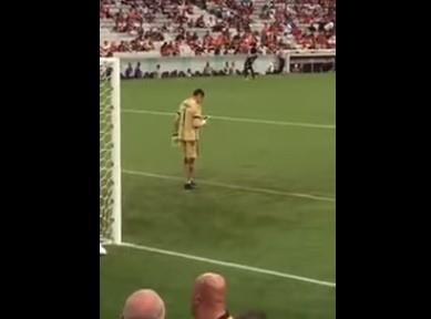 Došao je iza gola, uzeo mobilni i počeo da kucka po njemu. Kada je video da je utakmica počela, odjurio je iza gola i ostavio telefon.