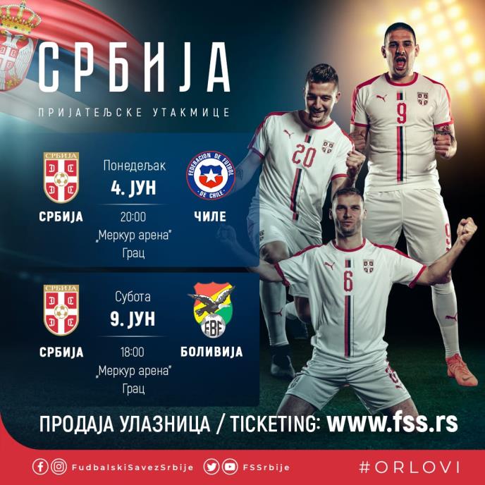Prvi kontrolni meč je 4. juna od 20 časova protiv aktuelnog šampiona Južne Amerike Čilea, dok se druga utakmica igra 9. juna od 18 sati protiv selekcije Bolivije.