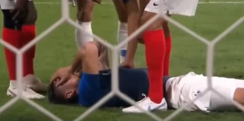 Francus Olivije Žiru dobio je povez oko glave zbog napuknute arkade nakon jezivog sudara sa golmanom američke selekcije Metom Miazgom koji je posle kontakta ostao da leži na travi u lokvi krvi.