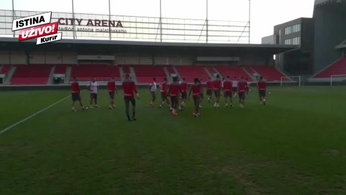 Fudbaleri Crvene zvezde odradili su prvi i jedini trening na stadionu Anton Malatinski u Trnavi pred revanš meč kvalifikacija za Ligu šampiona sa ekipom Spartaka.