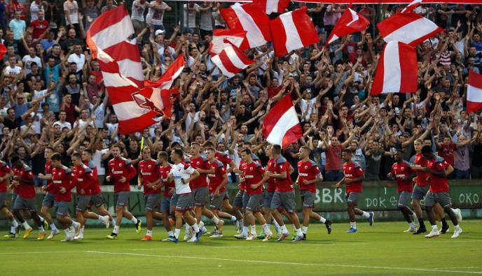 Fudbaleri Crvene zvezde dobili su od vernih navijača neophodan vetar u leđa na treningu pred duel sa Salcburgom, odnosno uoči prvog meča plej-ofa za Ligu šampiona.