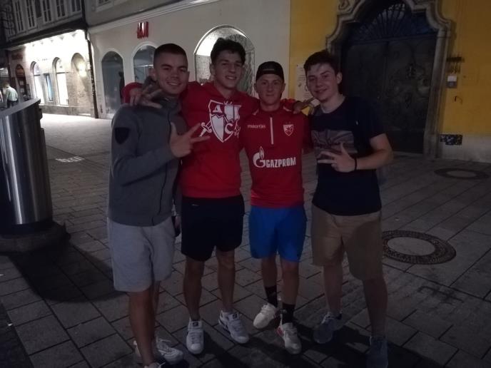 Reporter Kurira sinoć je na ulicama Salcburga sreo nekoliko mlađih navijaca Crvene zvezde iz ovog grada. Kažu nam da imaju 17 i 16 godina, a što se tiče utakmice sa Salcburgom, jedva čekaju početak: