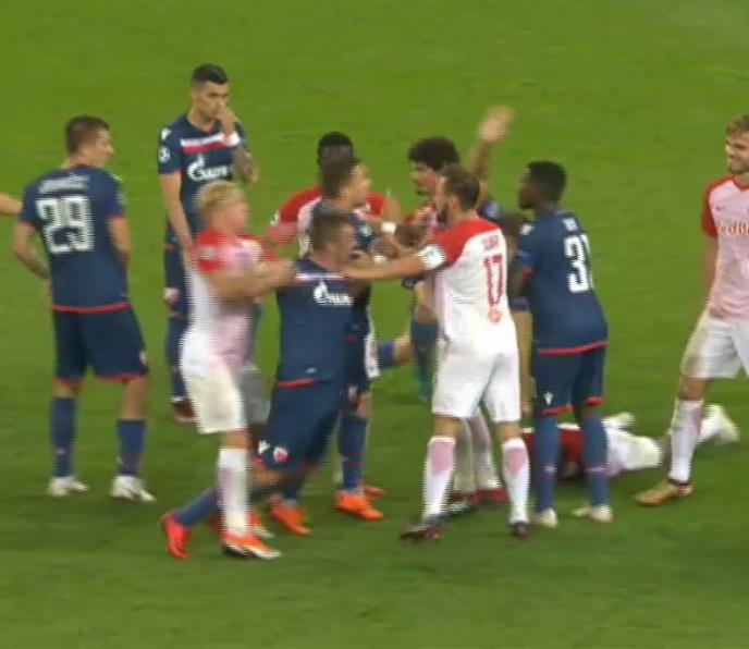 Fudbaler Salcburga za vreme utakmice sa Crvenom zvezdom namerno je posle jednog starta pregazio fudbalera Crvene zvezde.