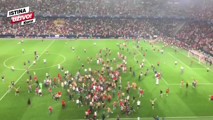 Posle utakmice veliki broj navijača Crvene zvezde uleteo je na teren i napravio opšti haos.