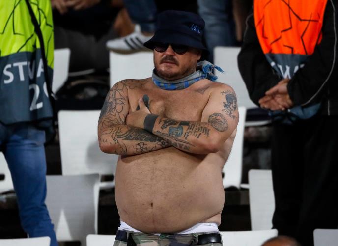 Na sat i po pred početak utakmice u "kavezu" je bilo oko 300 navijača Napolija.