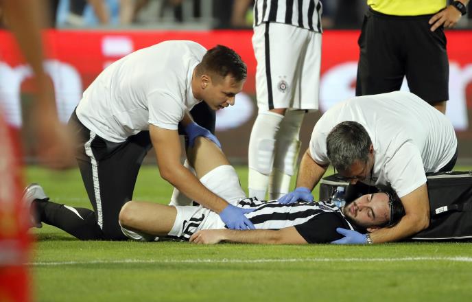 Fudbaler Partizana Marko Janković je posle jednog duela pao na zemlji i izgubio svest.