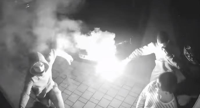 Dvojica od te četvorice, za koje se pretpostavlja da su navijači, napali su Srbe, a jedan je zapalio baklju.