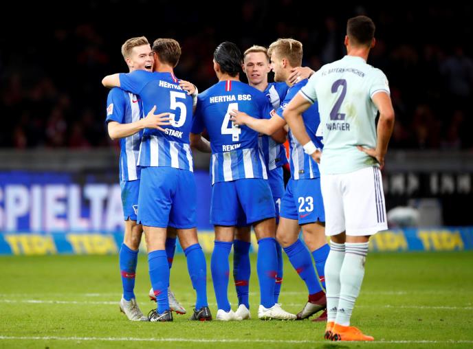 Fudbaleri Herte pobedili su danas na svom terenu Bajern Minhen sa 2:0 u prvoj utakmici šestog kola i tako došli do deobe prvog mesta na tabeli Bundeslige.