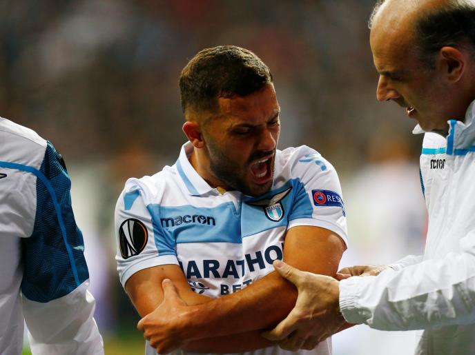 On je u 18. minutu pokušao da prodre po strani i zatim centrira u kazneni prostor nemačkog tima. Oboren je, a start igrača Ajntrahta bio je takav da je fudbaleru Lacija slomljena ruka.