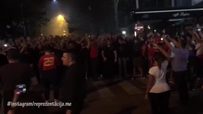 Kada je korteo krenuo, mrak se već bio nadvio nad glavnim gradom Crne Gore, a navijači su put ka stadionu osvetljavali bakljama.