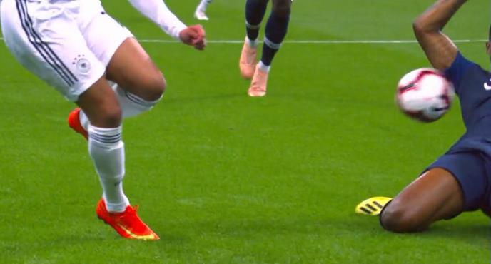 Nemački reprezentativac je presekao jednu loptu i dodao je Saneu koji je pokušao da centrira i loptu ubaci u peterac svojim napadačima. Uklizao je štoper Francuza Kimpembe koji je rukom skrenuo pravac lopte i tako praktično sprečio gol Francuza.