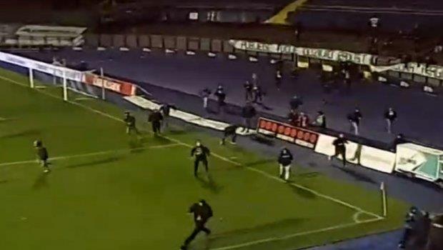 Navijači domaćeg tima, popularni Manijaci, utrčali su na teren da se obračunaju sa igračima koji su poraženi 1:0 golom u nadoknadi vremena.